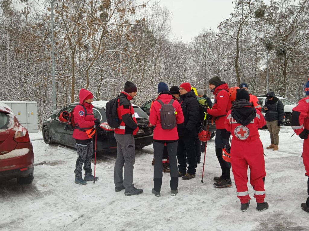 - Działania poszukiwawcze wspiera pies ratowniczy pracujący metodą górnego wiatru (air scent), wyszkolony do wykrywania zapachu człowieka i lokalizowania osób zaginionych w terenie.